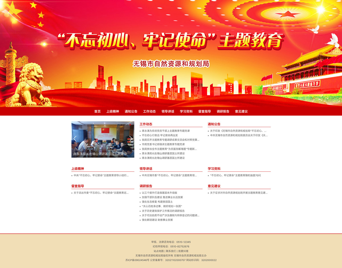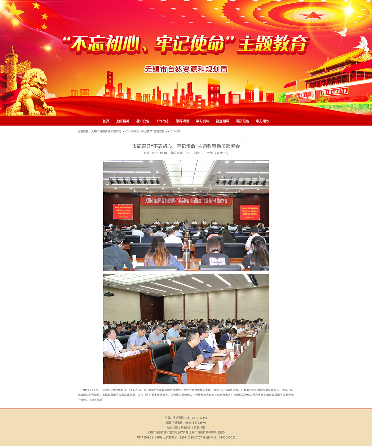 无锡伟致信息技术有限公司为无锡市自然资源和规划局提供专业的网站定制开发服务,为其定制了网站官网、《四全模式专栏》、《征地公开信息专栏》、《无锡国土资源杂志网页版》以及本期的《 “不忘初心、牢记使命”主题教育专栏》等,受到了无锡市自然资源和规划局领导的肯定。