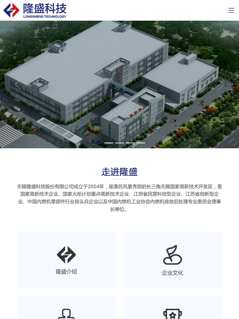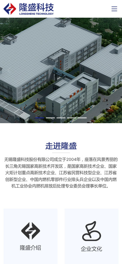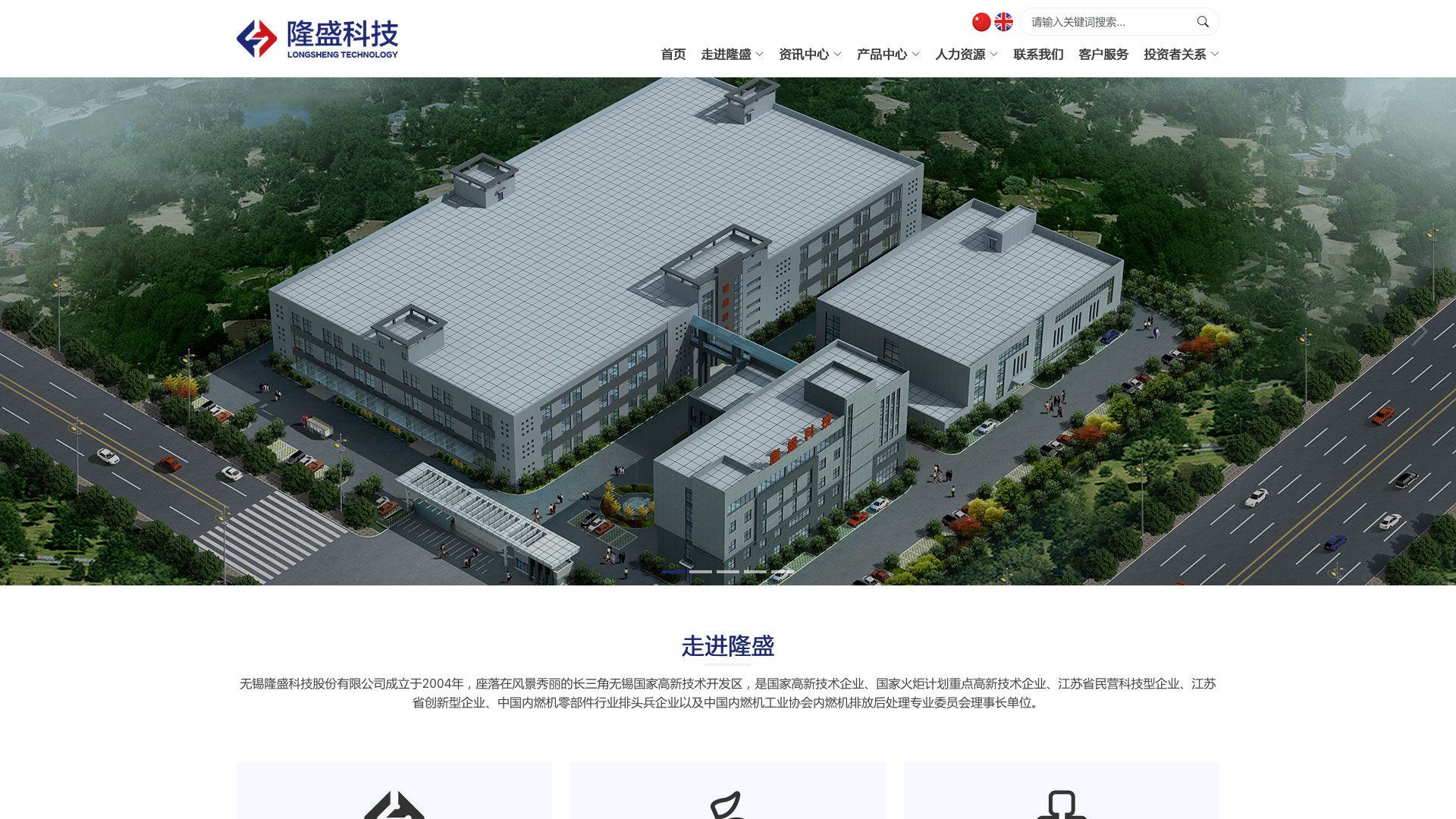 无锡隆盛科技股份有限公司成立于2004年,座落在风景秀丽的长三角无锡国家高新技术开发区,是国家高新技术企业、国家火炬计划重点高新技术企业、江苏省民营科技型企业、江苏省创新型企业、中国内燃机零部件行业排头兵企业以及中国内燃机工业协会内燃机排放后处理专业委员会理事长单位。