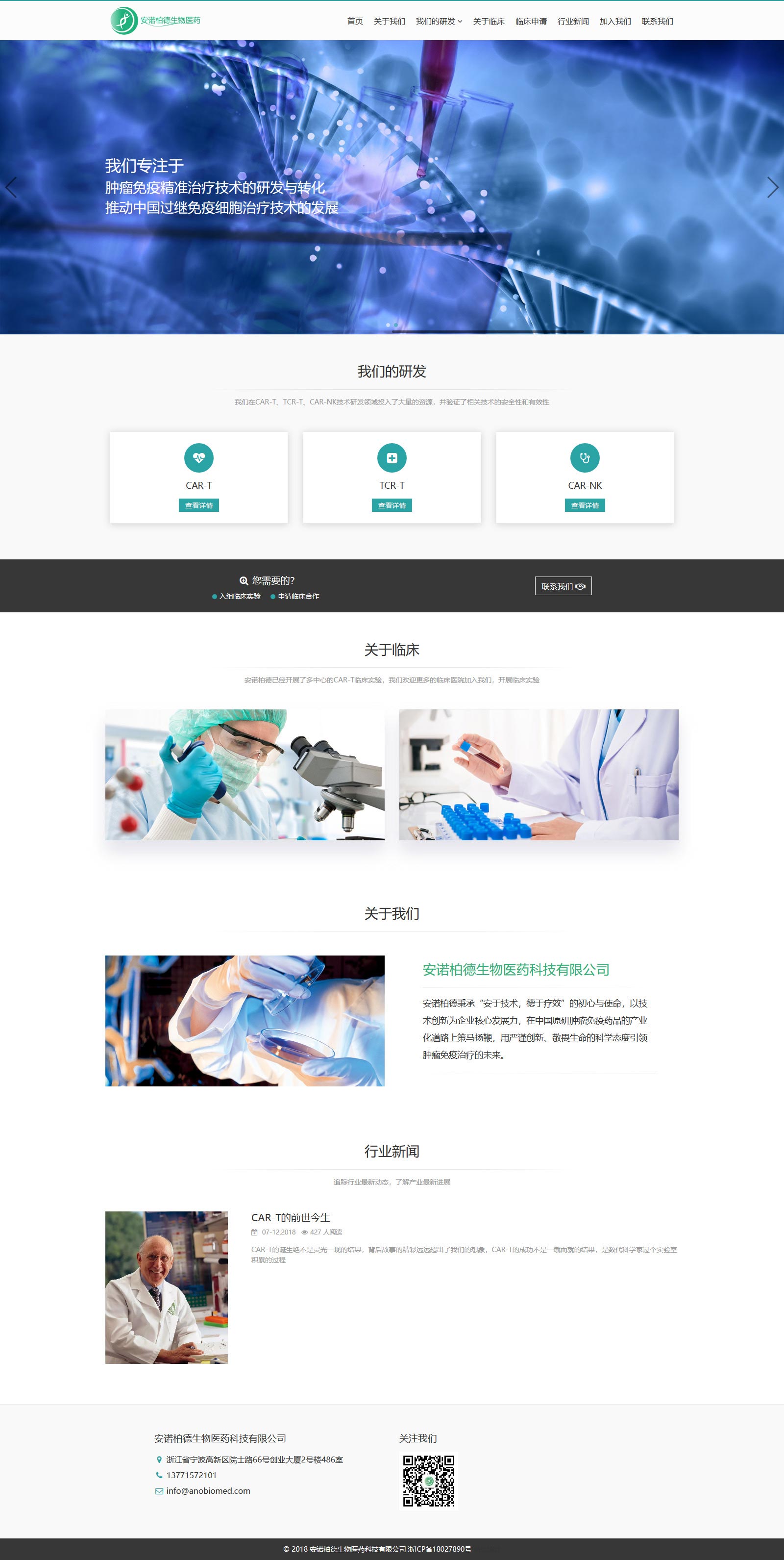 宁波安诺柏德生物医药科技有限公司,专注于肿瘤免疫抗体药物和基因药物的研发及临床转化,申请注册了多项处于国内外领先地位的肿瘤免疫治疗技术发明专利,覆盖了CAR-T、PD1多个肿瘤免疫治疗热点领域。
