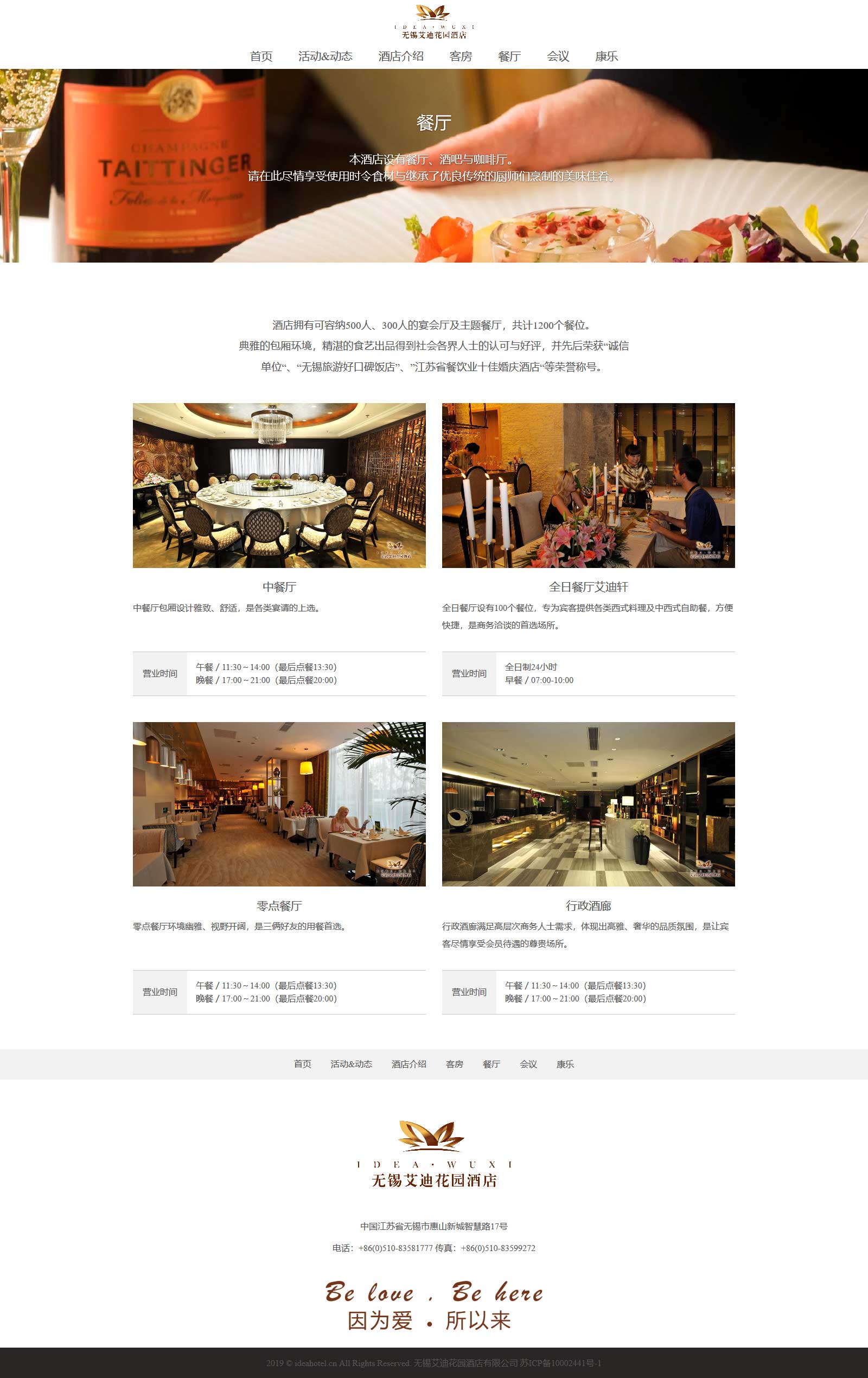 网站主要展现酒店环境及居住环境,突出“花园型”的特色,网站采用bootstrap4+css3,同时绑定微信公众号,方便客户一键识别,咨询预订。