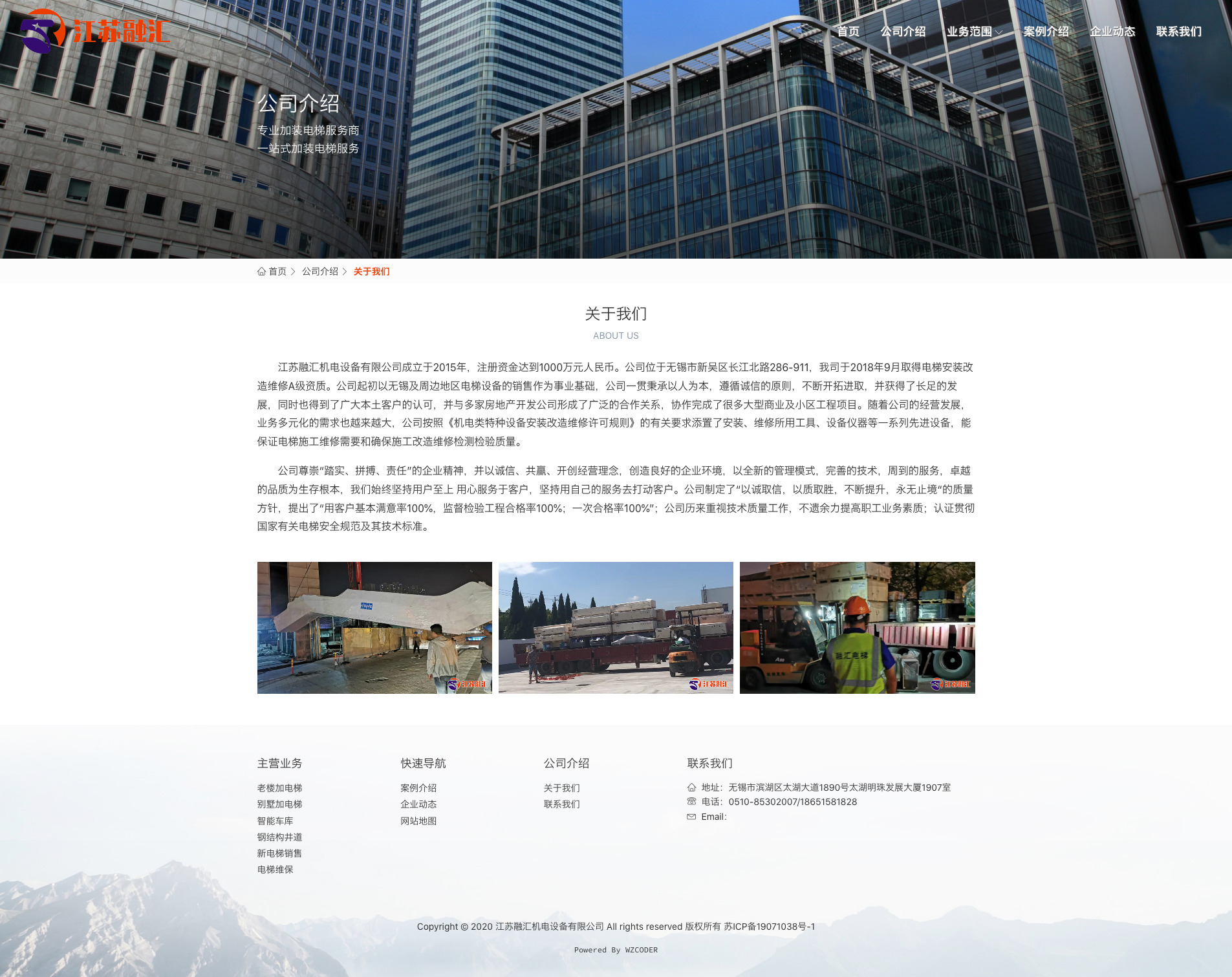 江苏融汇机电设备有限公司成立于2015年,电梯安装改造维修A级资质。公司起初以无锡及周边地区电梯设备的销售作为事业基础,并与多家房地产开发公司形成了广泛的合作关系,协作完成了很多大型商业及小区工程项目。