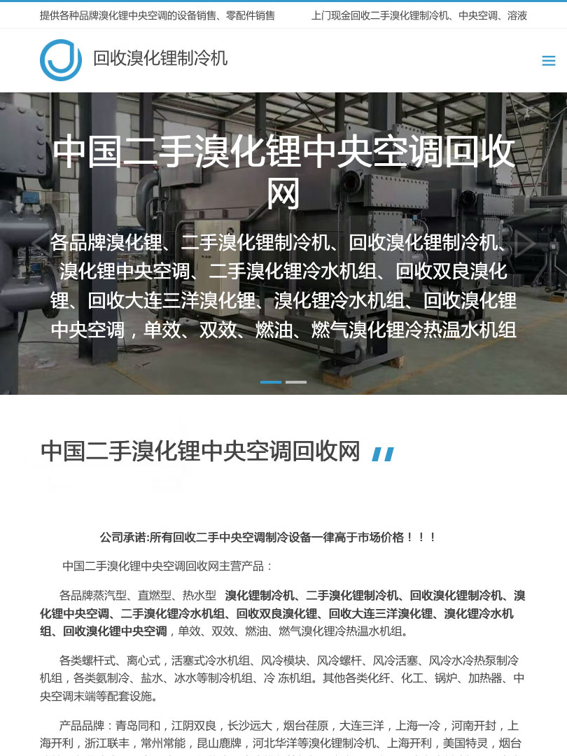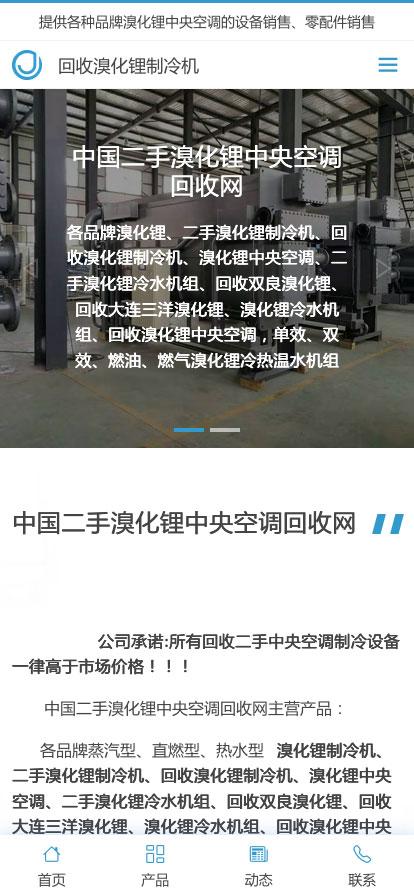 中国二手溴化锂中央空调回收网,二手设备回收网站模板,SEO优化设计,自定义 url,自定义 TDK 等功能。