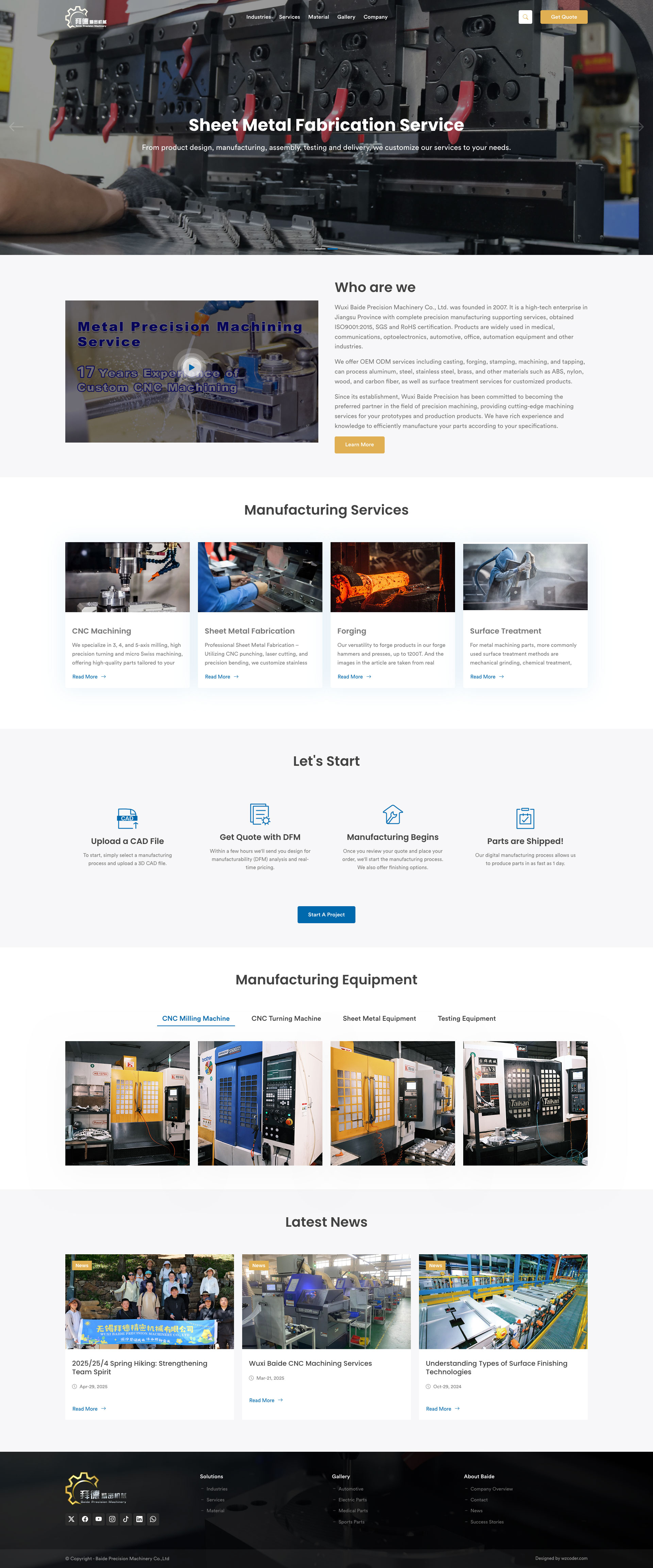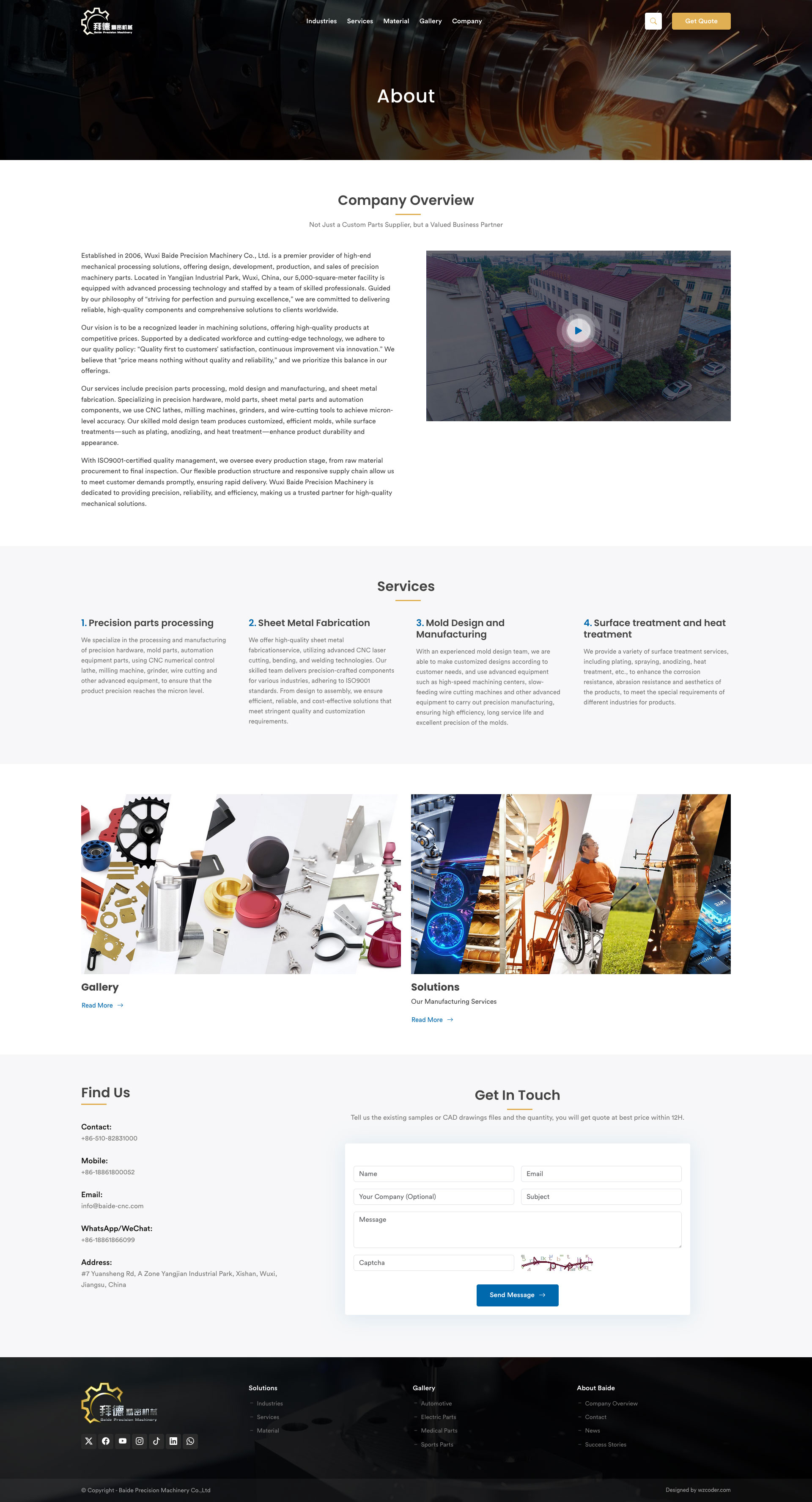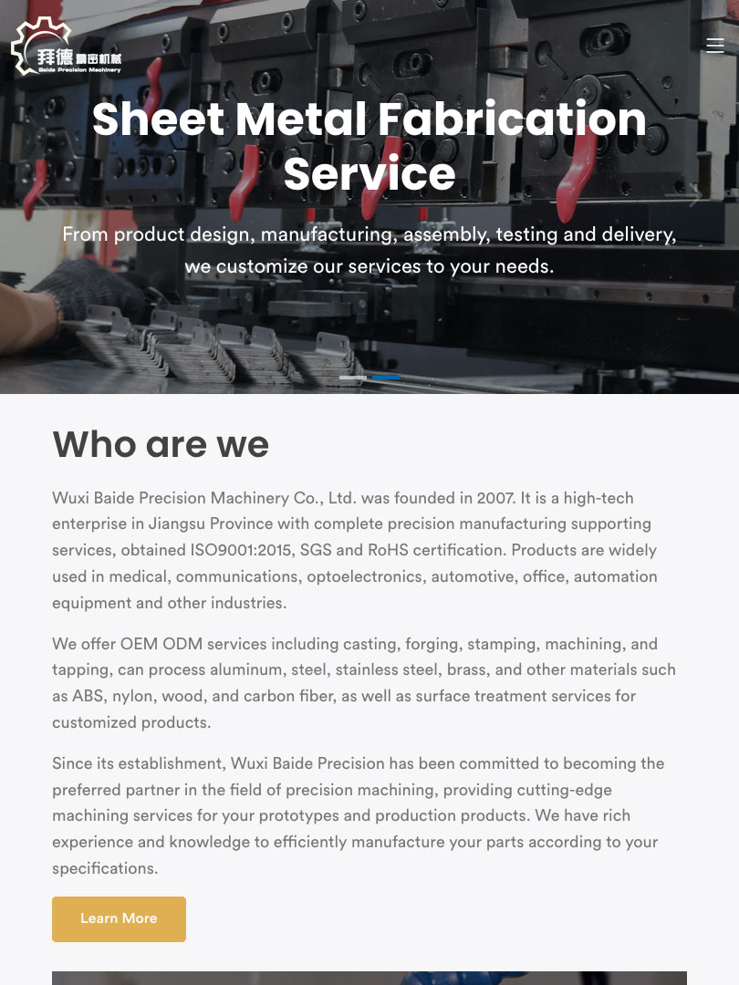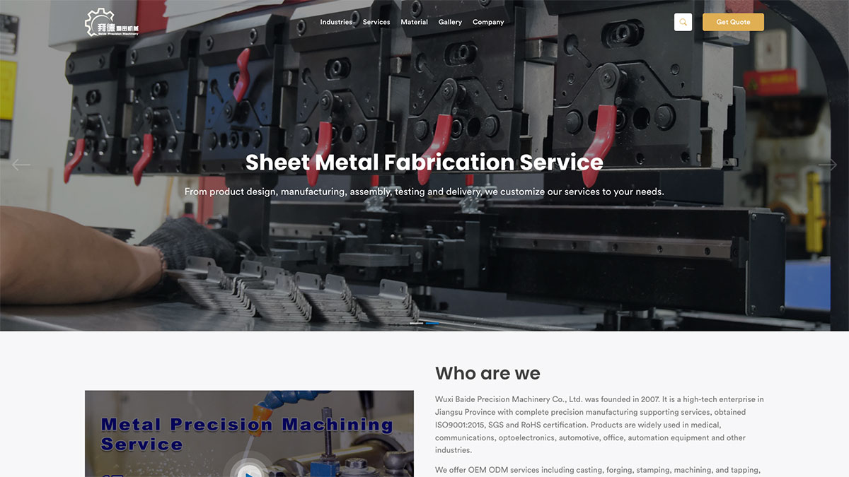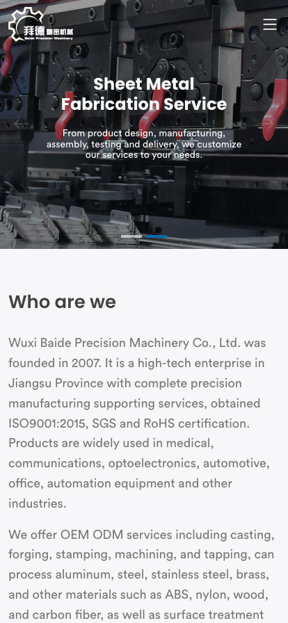 加工服务类外贸网站模板,响应式设计。包括服务、产品、相册、企业介绍、询价等多个海外外贸站功能,支持多国语言扩展。