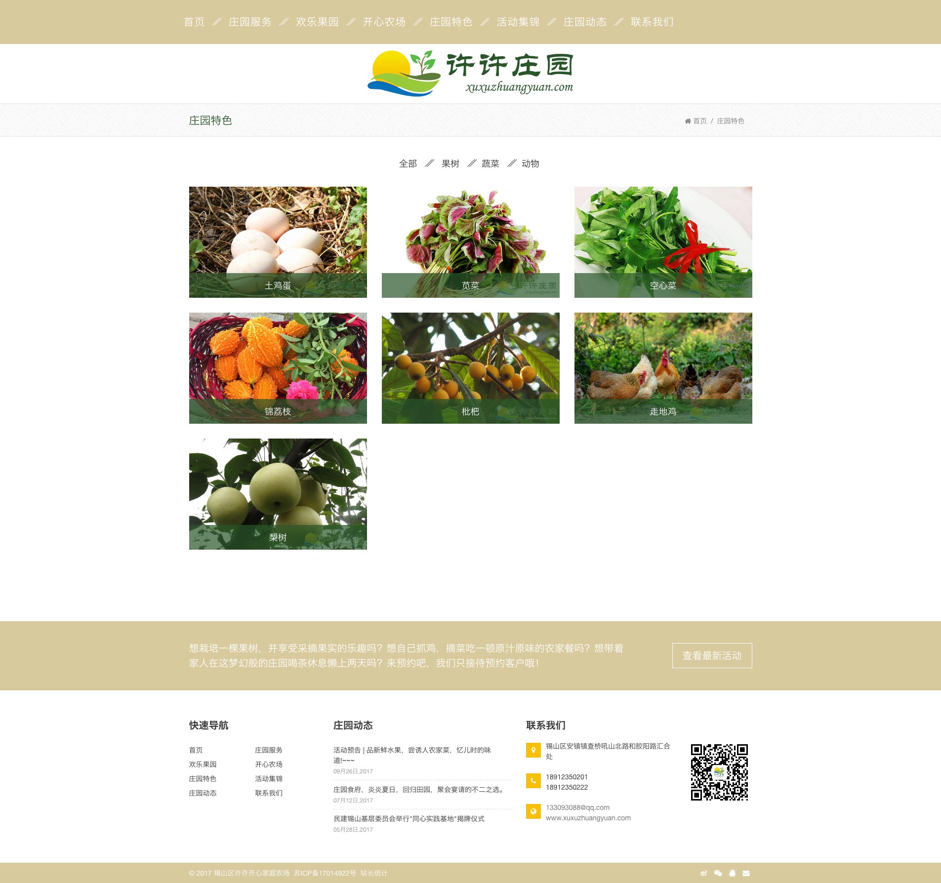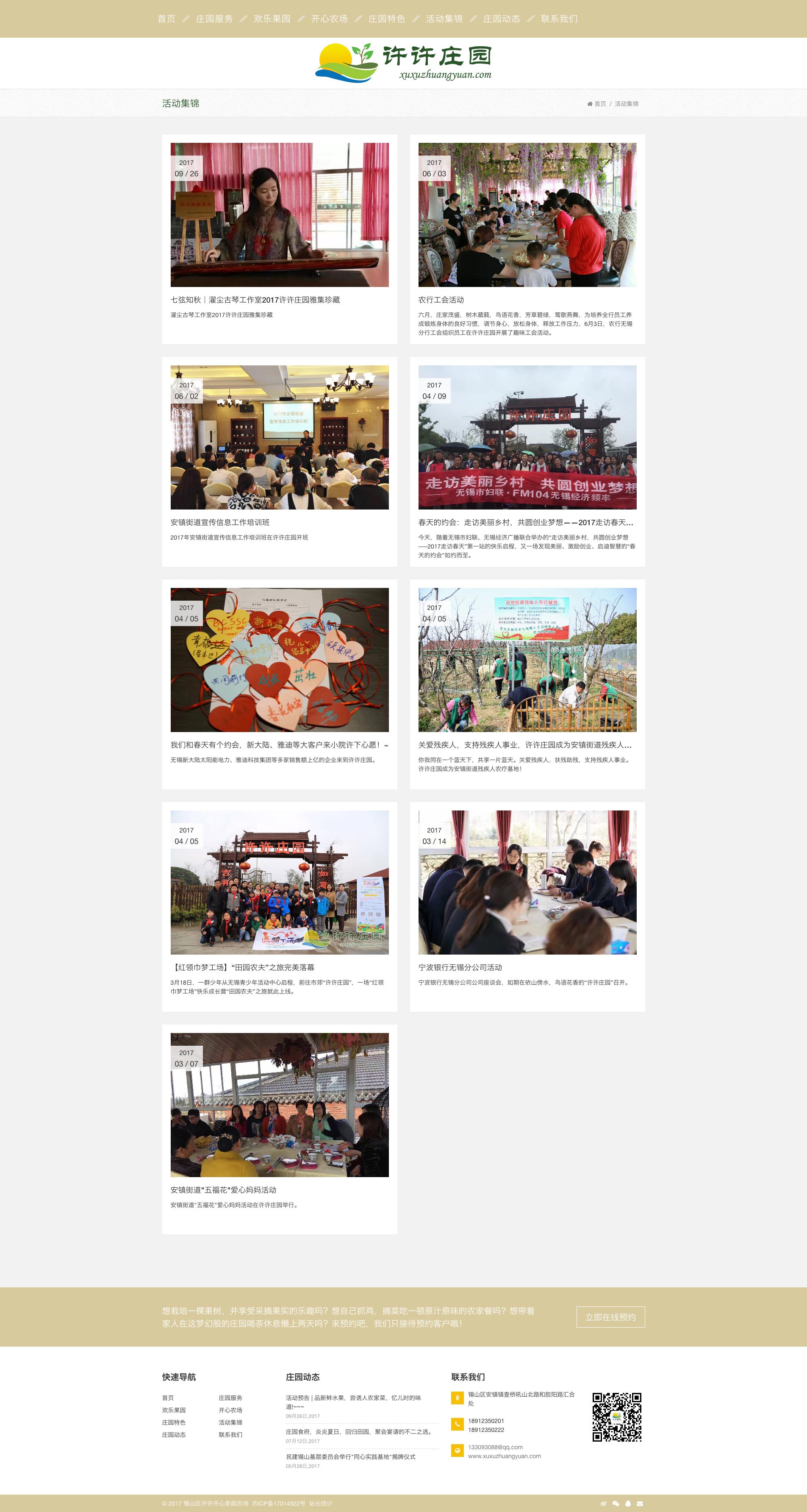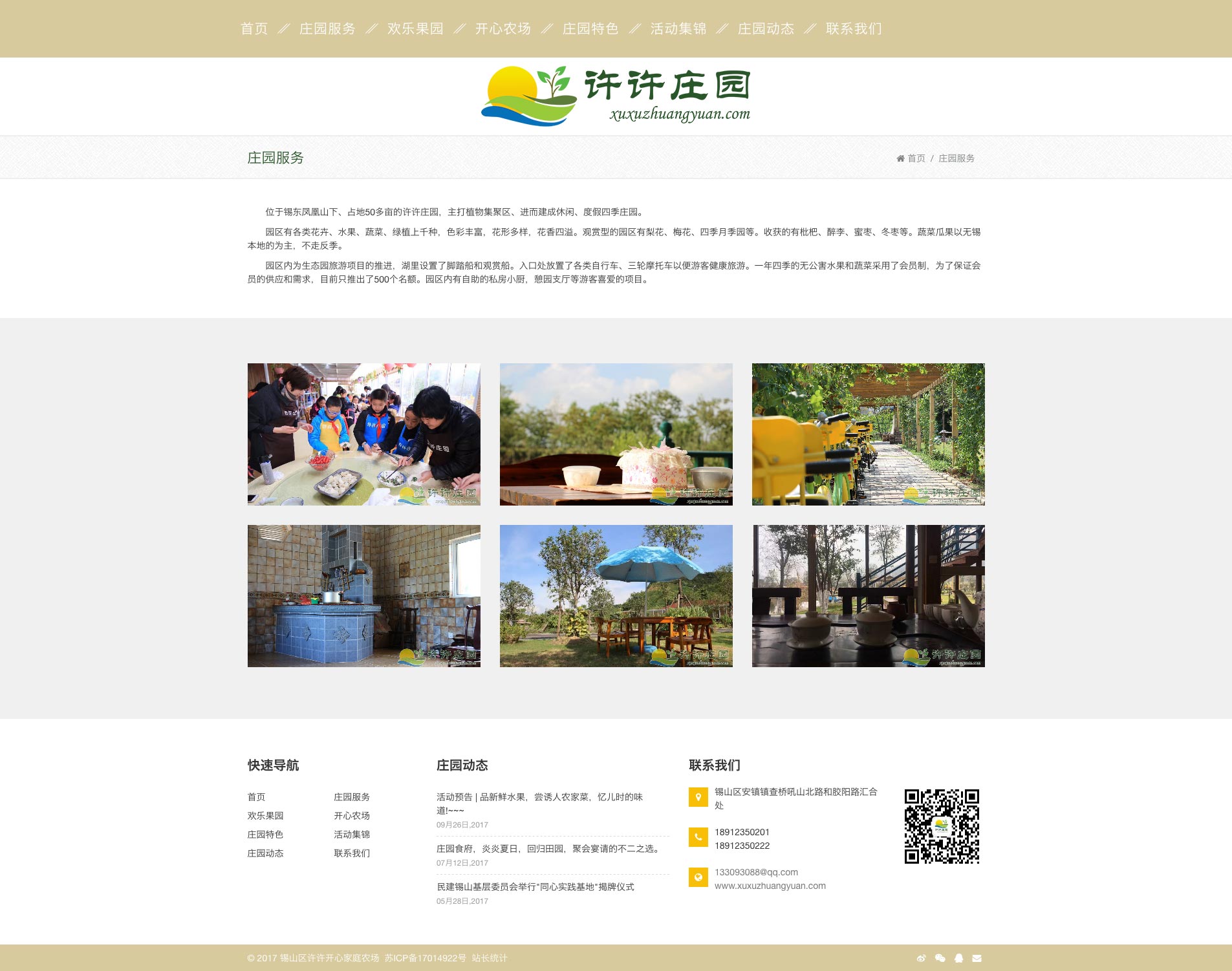 农家乐,庄园网站,响应式,支持手机/电脑/pad。包括文章页,列表(两种),图文单页,带动态地图联系页。支持在线留言、推送邮箱、短信等功能。